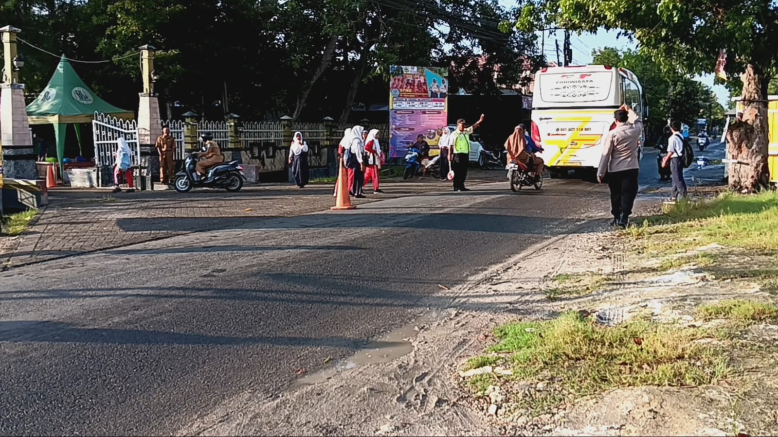 Pengamanan dimulai pukul 06.30 WIB, dipimpin petugas jaga Aiptu Jojon bersama Aipda Fanani yang berjaga di depan SMP Negeri 1 Maduran. Kegiatan difokuskan pada pengaturan lalu lintas masyarakat yang melintas di kawasan sekolah pada jam sibuk kedatangan siswa.