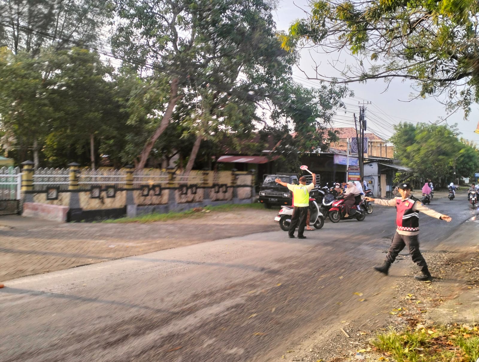 Atur Arus Lalu Lintas di Depan SMPN 1 Maduran Gelar Commander Wish Pagi Polsek Maduran