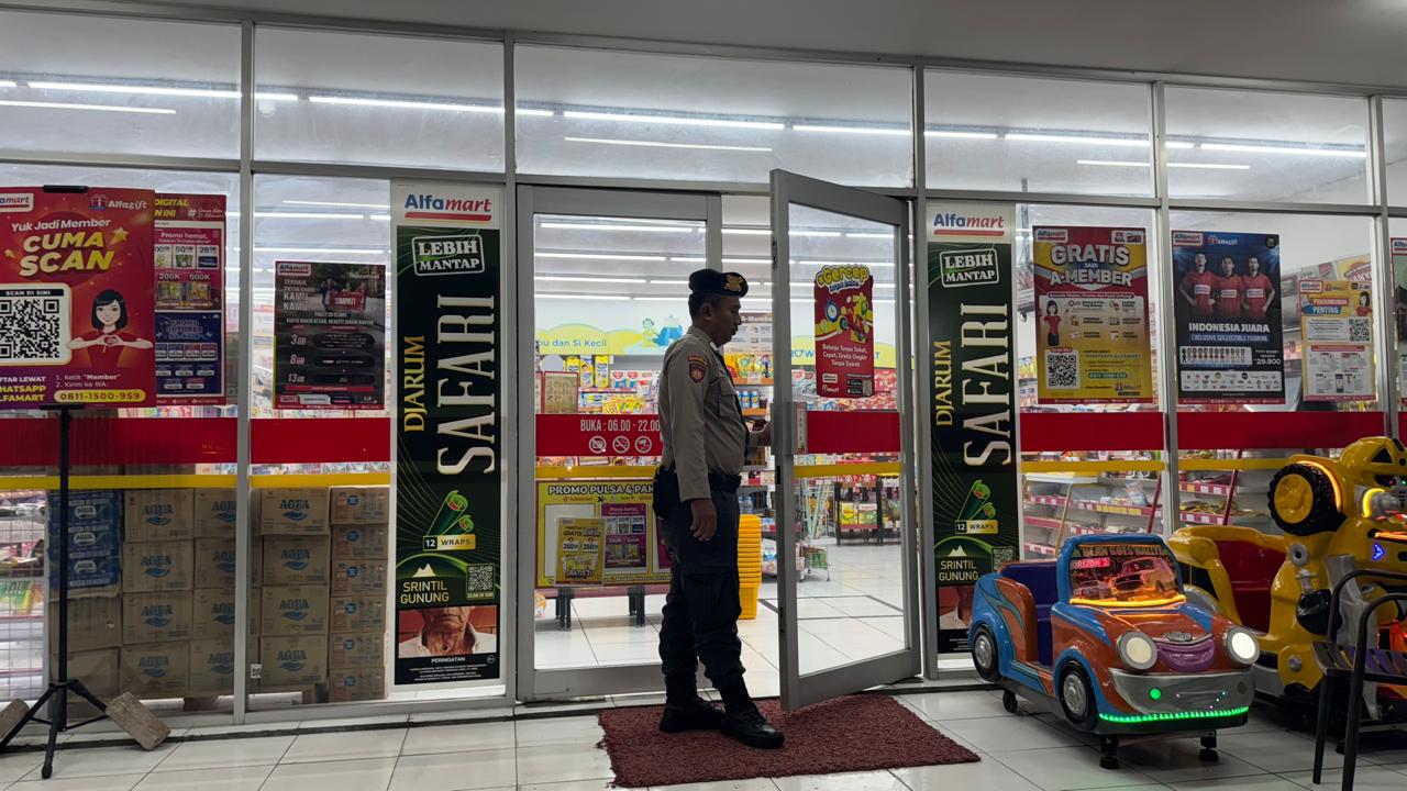 Petugas melakukan pengecekan lingkungan sekitar, memastikan kondisi kamera pengawas aktif, serta memberikan imbauan kepada masyarakat dan pegawai minimarket agar meningkatkan kewaspadaan terhadap aktivitas mencurigakan.