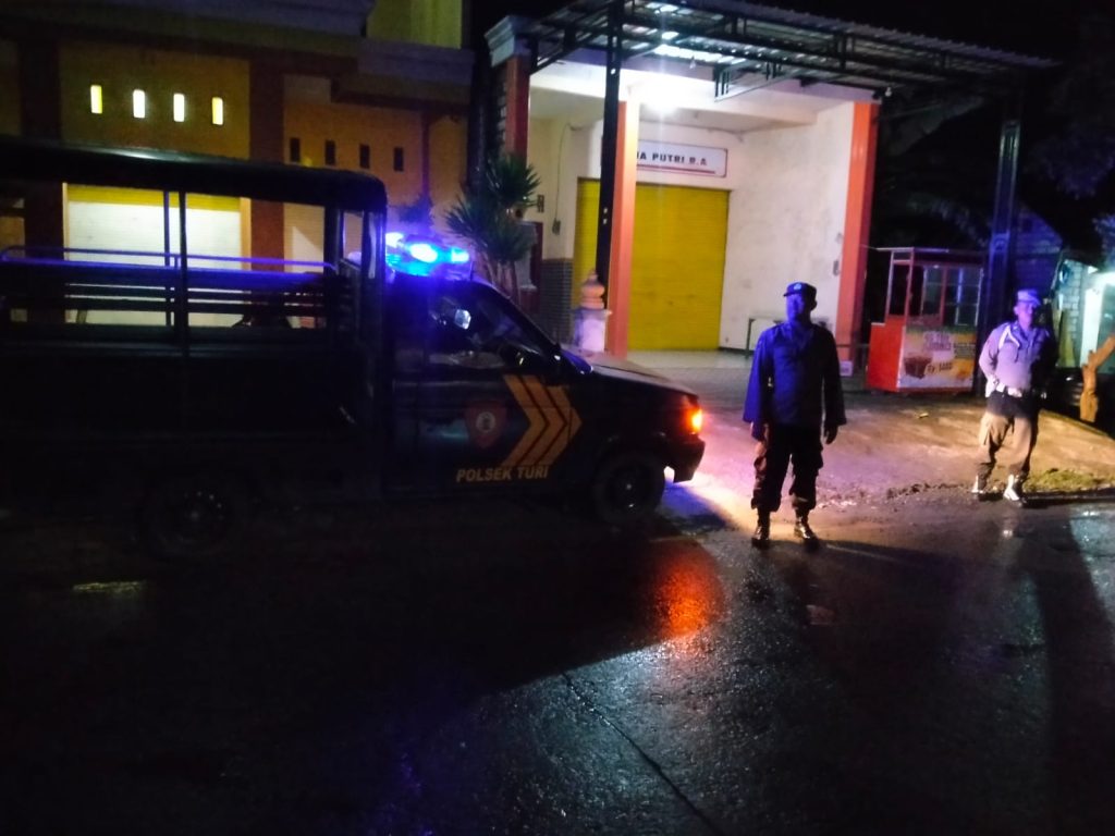 Petugas jaga Polsek Turi kembali menggelar patroli mobile dengan lampu rotator biru (blue light) guna mencegah kejahatan jalanan dan aksi tawuran malam hari di wilayah Kecamatan Turi.