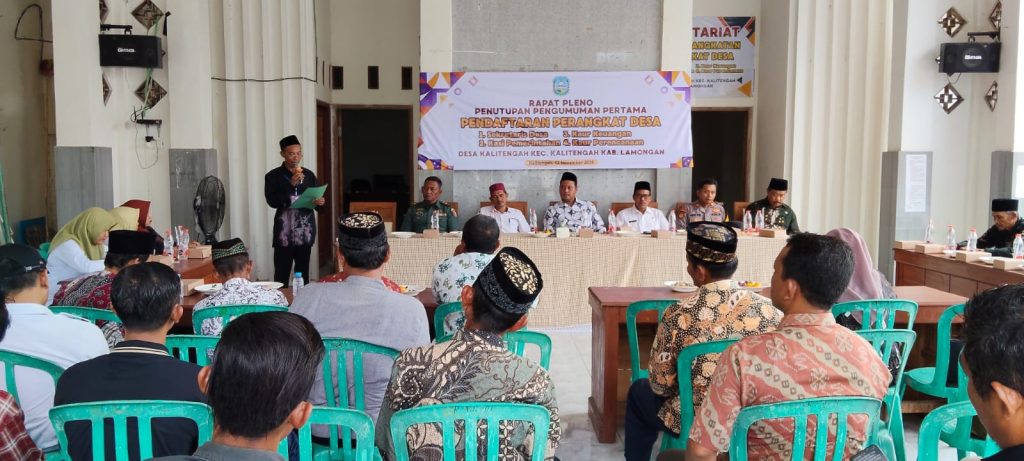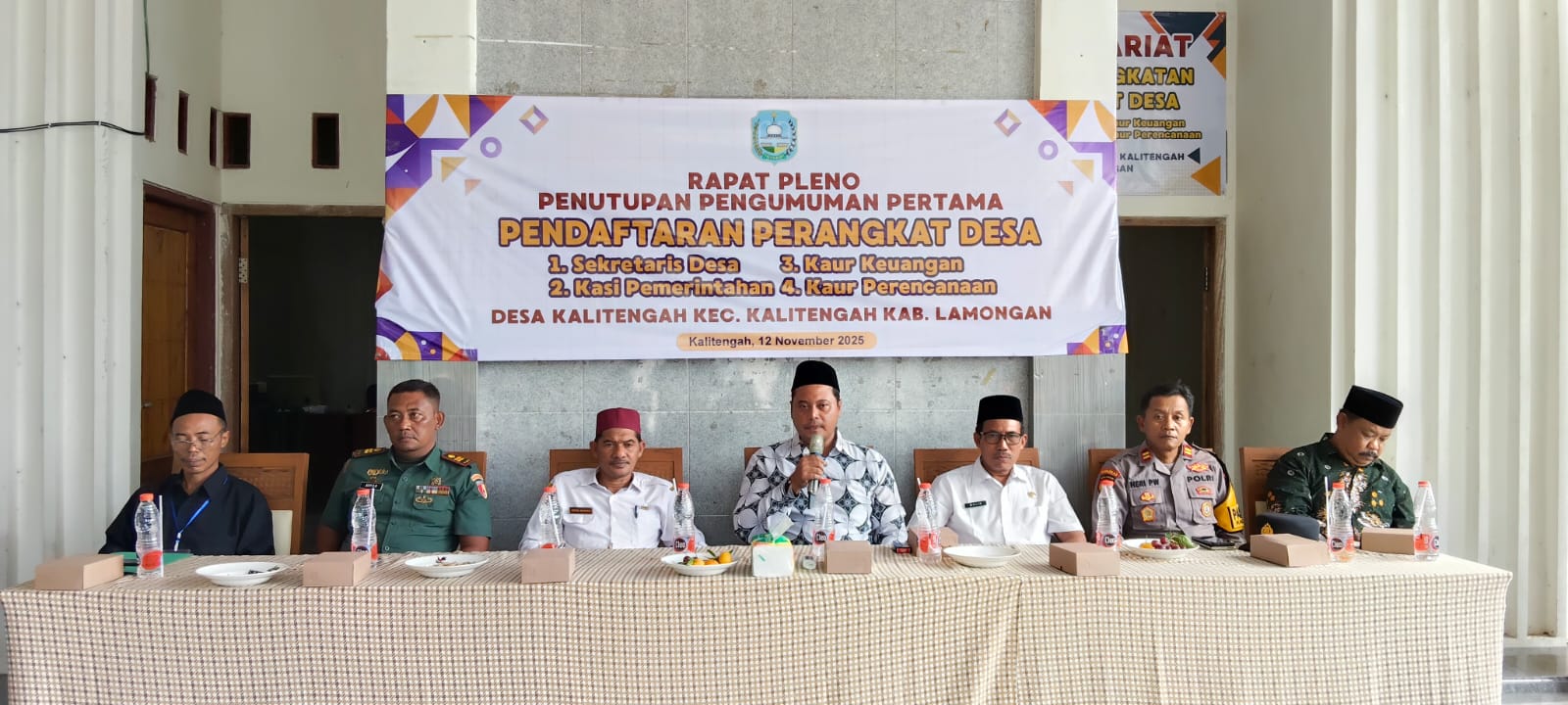 Lamongan, Analisajatim.id– Dalam rangka melanjutkan tahapan seleksi pengisian jabatan perangkat desa, Pemerintah Desa Kalitengah, Kecamatan Kalitengah, Kabupaten Lamongan menggelar Rapat Pleno Penutupan dan Pengumuman Pendaftaran Calon Perangkat Desa, Rabu (12/11/2025) pukul 14.30 hingga 15.30 WIB, bertempat di Balai Desa Kalitengah.