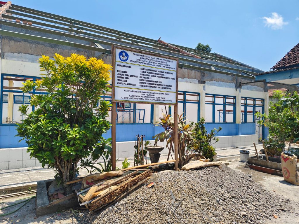 Seperti yang diterima dan dilaksanakan oleh sekolah dasar negeri ( SDN) Tulakan Sine 2 kecamatan Sine, kabupaten Ngawi Jawa – Timur. 4 ruang sekaligus direhab dengan anggaran Rp. 482.858.871.dengan jangka waktu 100 hari kalender, mulai 1 September sampai 15 Desember 2025, sedang sistem pengerjaan swakelola oleh panitia pembangunan satuan Pendidikan ( P2SP).