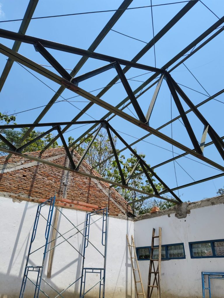 Material bangunan seperti pasir, merupakan pasir bagus dengan kualitas super, terlihat dari bersihnya, warna hitam mengkilap, dengan butiran – butiran keras, minus wadek. Semen kelas merk Gresik yang dipasaran kisaran harga 57 ribu per sak, pengerjaan atap ganti total dengan baja ringan atau galvalum, dan rangka atap menggunakan besi hollow ( kanal C), yang tentu tahan lama, serta kuat, anti raya, tutor, lapuk, kamis 9/10/25.