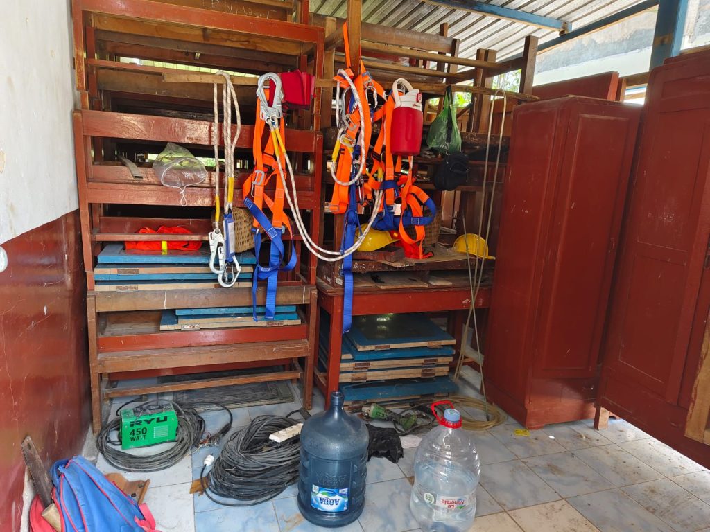 Di lokasi proyek sudah ada papan proyek berupa banner besar, ada direksi kit, tempat menyimpan peralatan APD atau alat pelindung diri pekerja, gambar proyek, dan susunan panitia. Para pekerja tampak serius bekerja, dan terlihat tidak alergi dengan kedatangan media.