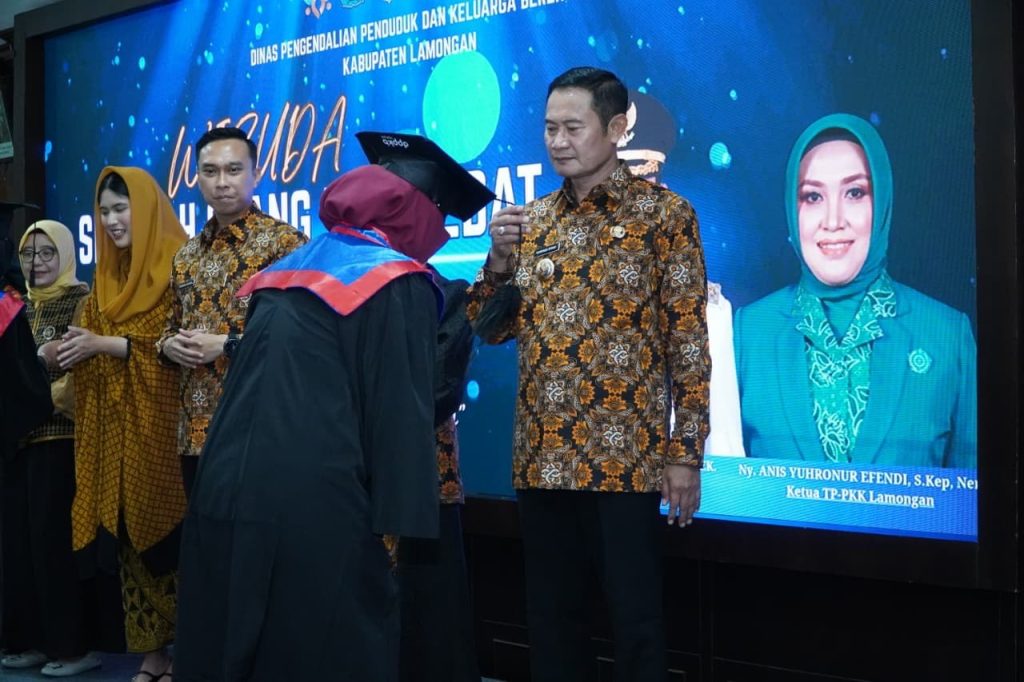 > “Kemampuan orang tua dalam pengasuhan anak memiliki dampak signifikan pada pencegahan stunting pada anak,” ujar Bupati Lamongan Yuhronur Efendi saat mewisuda 275 lulusan SOTH Angkatan VI, Kamis (18/12/2025) di Pendopo Lokatantra.
