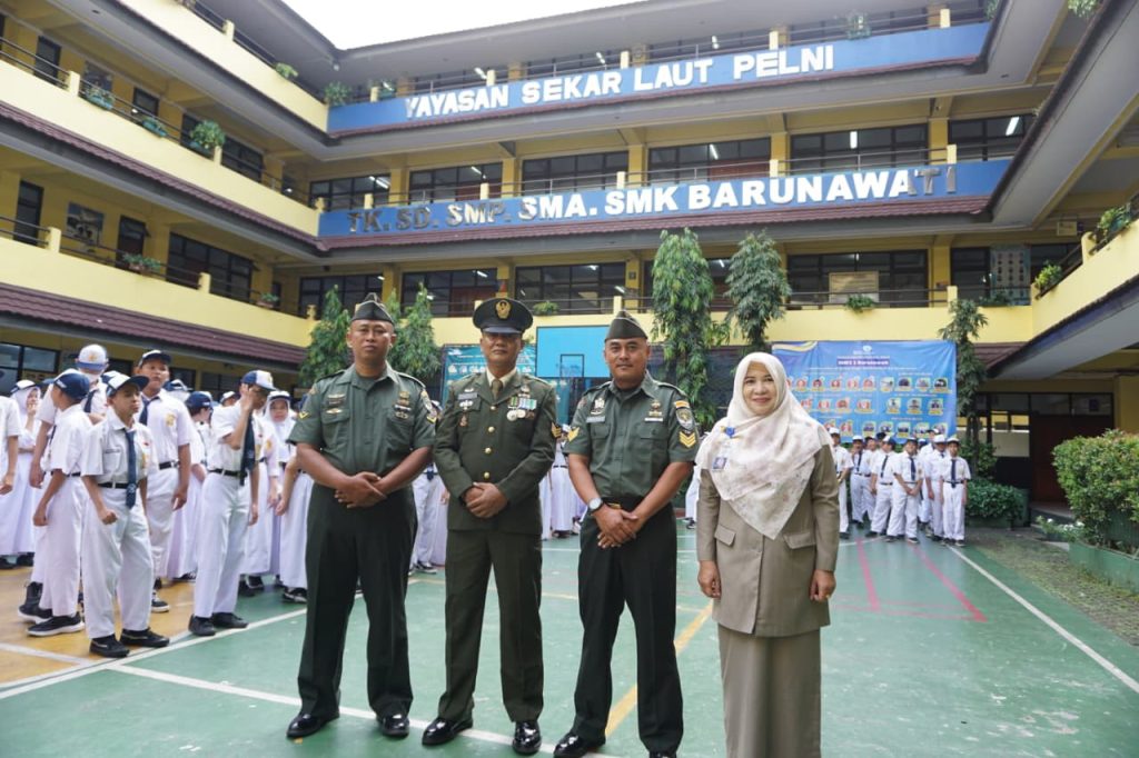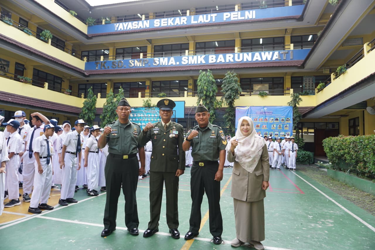 “Dalam rangka pencegahan tawuran, saya menghimbau agar Siswa/i SMP 1 Barunawati  menghindari tawuran dengan sekolah lain melalui upaya memperbanyak silaturahmi, seperti mengadakan olahraga bersama antar sekolah, antara lain Volly,  Futsal dll dengan tim pemain yang digabung dari berbagai sekolah. Tidak menggunakan Narkoba, karena zat terlarang tersebut akan merusak masa depan, ekonomi, dan keluarga, serta akan berurusan dengan hukum. Selain itu hindari Judi Online karena dapat merusak kondisi ekonomi dan kehidupan secara keseluruhan”, tegas Danramil.