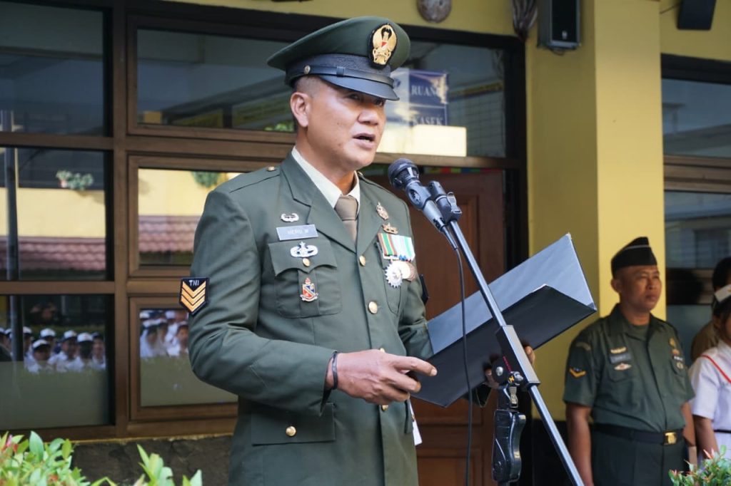Babinsa Koramil 03/Grogol Petamburan di SMP 1 Barunawati Jakarta Melanjutkan Perjuangan Pimpin Upacara Hari Pahlawa Serka Heru Wahyana Terus Bergerak