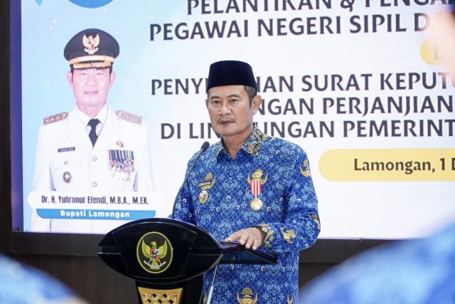 Seruan ini disampaikan langsung oleh Bupati Lamongan, Yuhronur Efendi, pada pelantikan dan pengambilan sumpah 91 Pegawai Negeri Sipil (PNS) dalam jabatan fungsional serta penyerahan Surat Keputusan kepada 231 Pegawai Pemerintah dengan Perjanjian Kerja (PPK) paruh waktu, Senin (1/12/2025) di Pendopo Lokatantra.